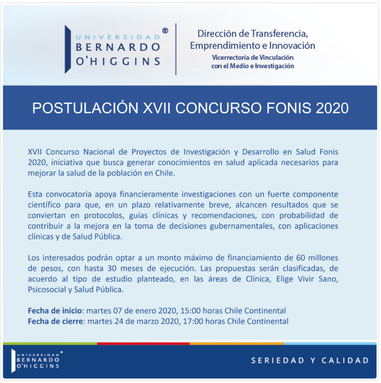 La DTEI invita a todos los interesados en postular a la convocatoria del XVII Concurso Nacional de Proyectos de Investigación y Desarrollo en Salud Fonis 2020.