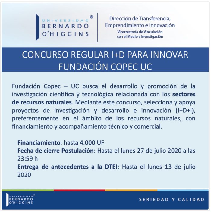 CONCURSO REGULAR I+D PARA INNOVAR FUNDACIÓN COPEC UC 2020